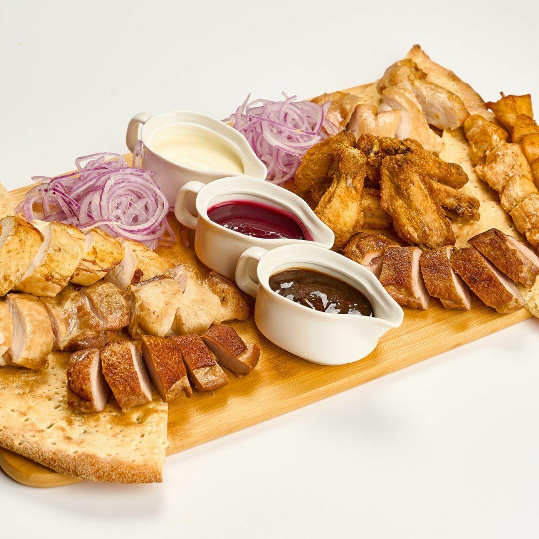 Ассорти из птицыЦена: 2900 рубВес:1700 грОписание:Утиная грудка, филе индейки, филе куриного бедра, куриные крылья, куриная грудка фаршированная моцареллой с базиликом на пшеничной фокачча