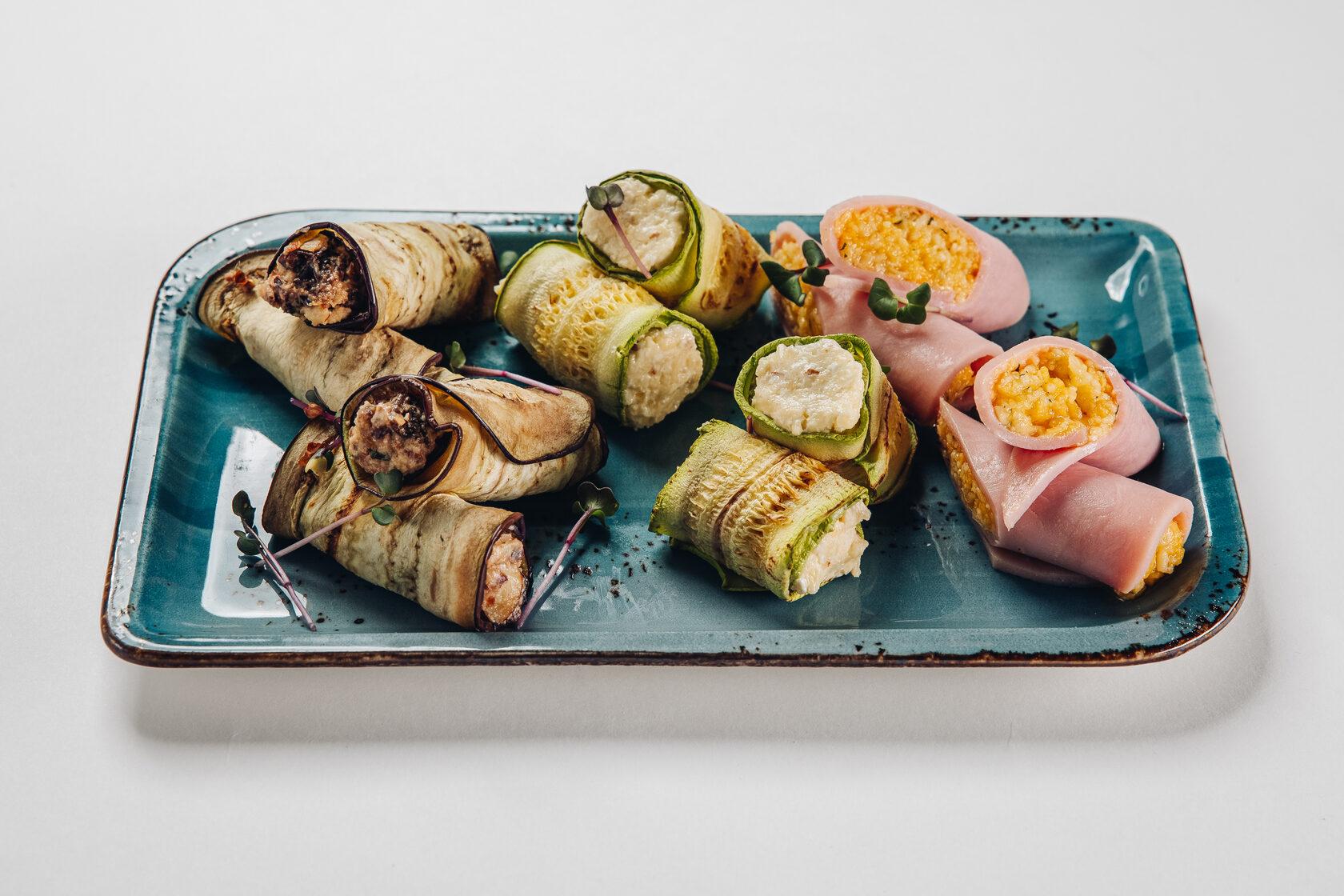 Ассорти рулетиковЦена: 610 рубВес:300 грОписание:Кабачок, баклажан, ветчина, зелень, сыр творожный, сыр гауда, миндаль, майонез, чеснок, чернослив