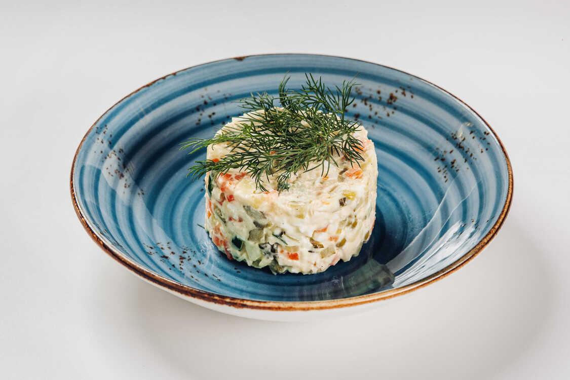 Оливье с курицейКуриная грудка, картофель, морковь отварная,солёный огурец, яйцо куриное, горошек консервированный, майонез Цена: 270 рубВес:200 гр